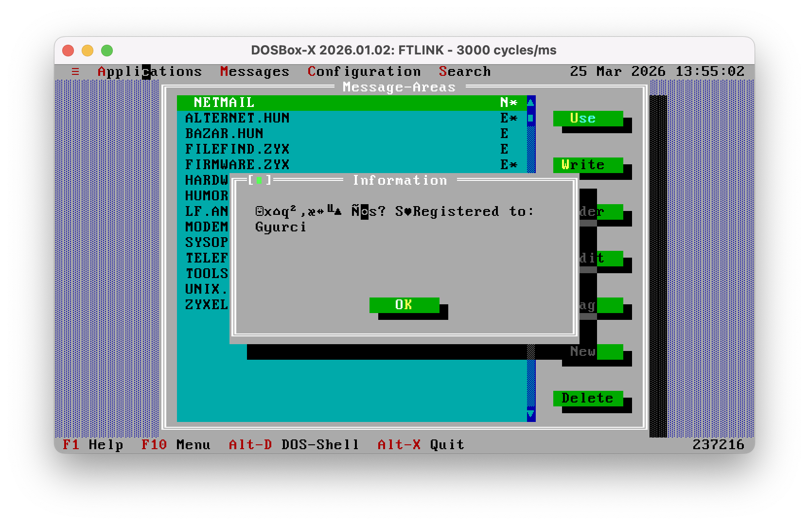 - az egyik a régi Fidós(FidoNet) levelezésem volt, amit egy FTLINK.EXE-vel használtam. Az FTLINK egy dosbox-x-ben simán előjött, így lehet majd turkálni az utolsó elmentett állapotát.